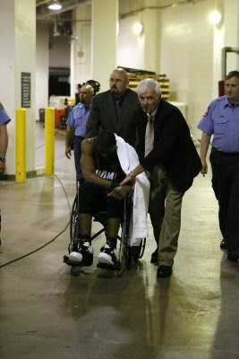 Uma das diferenças básicas das cadeiras comuns, as chamadas cadeiras sociais, em relação às de jogo, é aquela rodinha na parte de trás, chamada anti-tip, que serve para os jogadores não capotarem pra trás durante o jogo. Imagina se você tá jogando contra um Bruce Bowen de cadeira de rodas. Na impossibilidade de colocar o pé sob o seu depois de um arremesso, para torcê-lo, ele não iria pensar duas vezes na hora de virar sua cadeira pra trás. Digo isso porque o cara é safado e porque sei que ele não sabe português, então não vai vir aqui tirar satisfações.